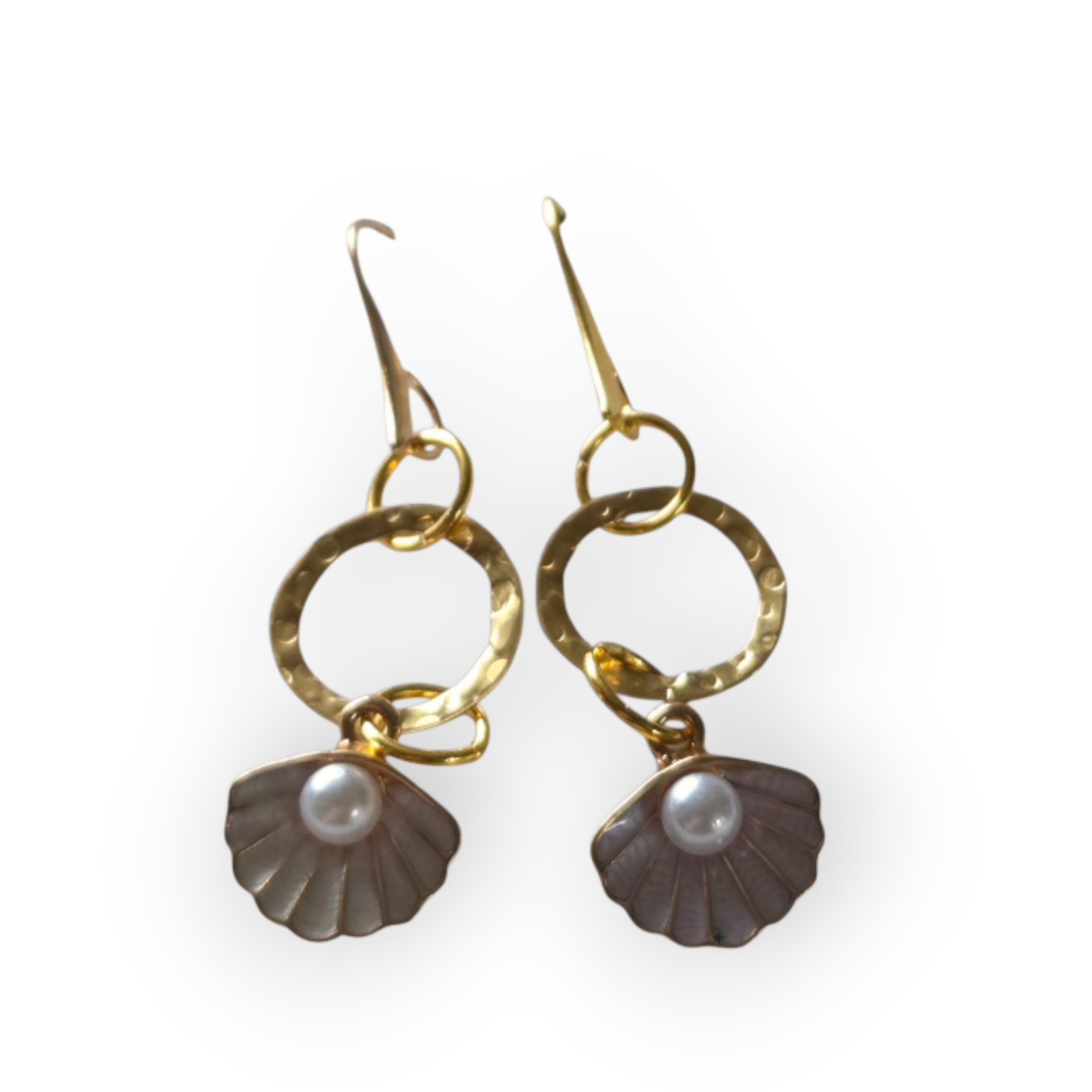 Shell enamel earrings with a pearl